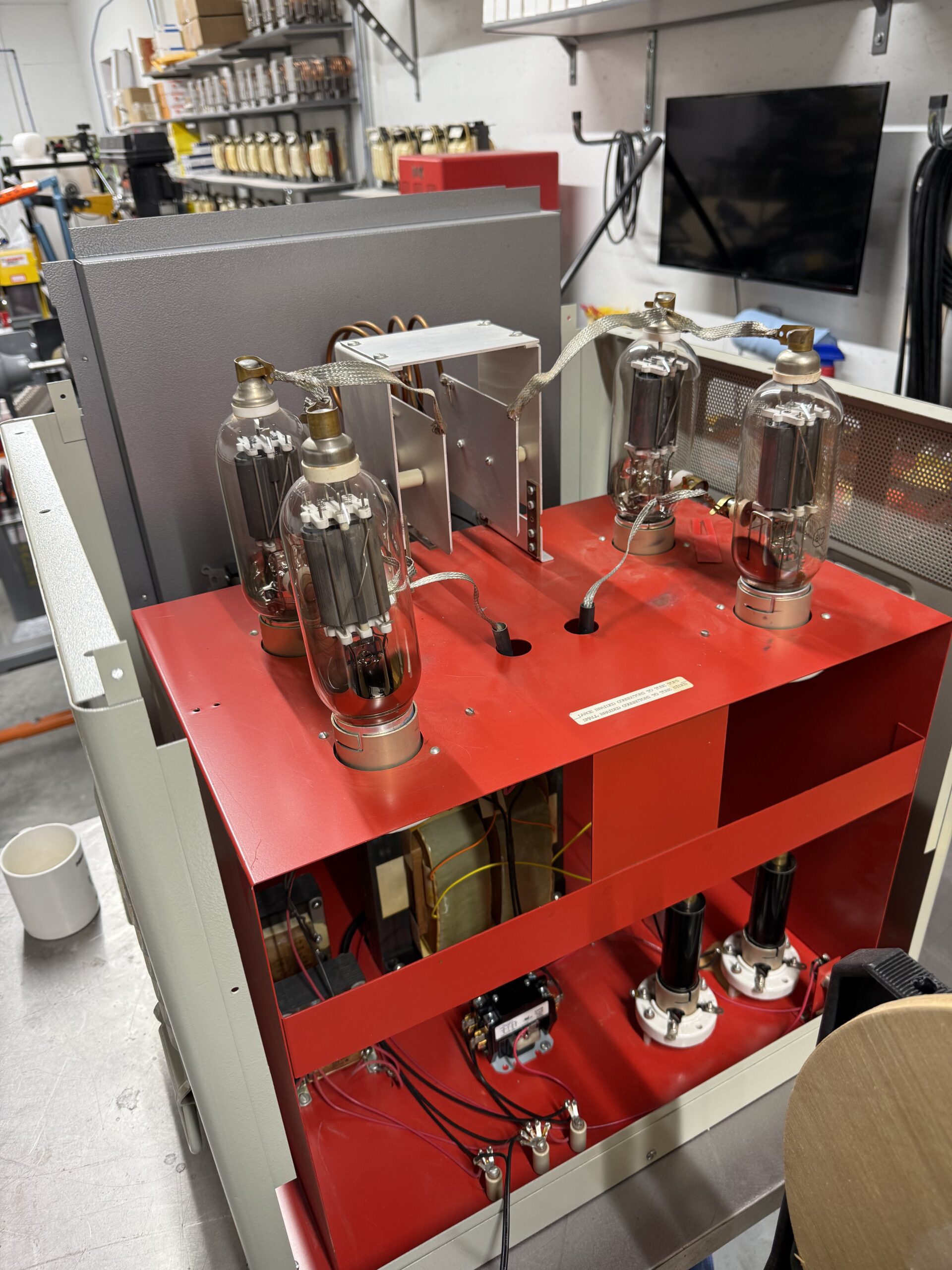 - Remove back panel, unpack and install power tubes, connect braided cables per the diagram on inside of back panel.